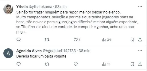 O meio-campista tem treinado com o elenco, pois foi reintegrado ao grupo, mas, sua escalação para os próximos duelos é bem improvável, já que a prioridade é a definição de seu futuro antes que seja acionado.
