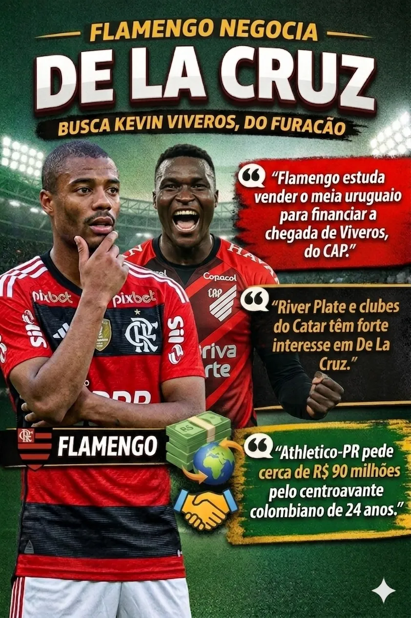 Nessa linha, de acordo com o portal Moon, foi revelado que o Mais Querido estaria cogitando negociar De La Cruz, justamente para conseguir avançar na contratação de Kevin Viveros, do Athletico-PR.