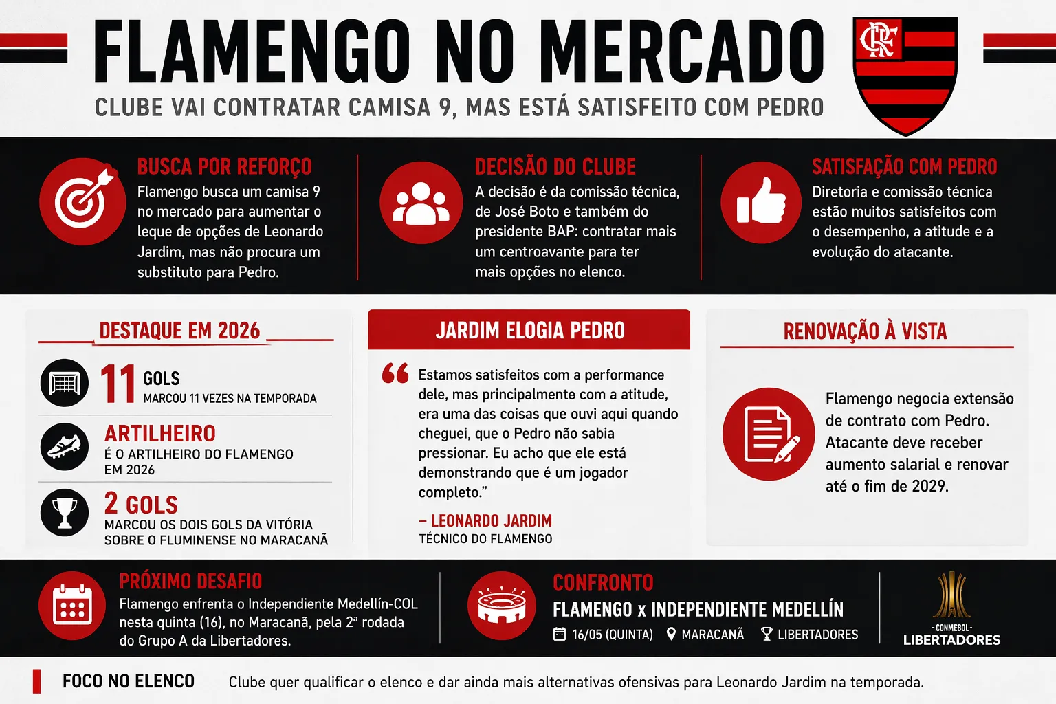 De acordo com informações de Paparazzo Rubro-Negro, a busca do Rubro-Negro por um centroavante é para aumentar o leque de opções de Leonardo Jardim, mas a diretoria e a comissão técnica estão muito satisfeitos com Pedro.