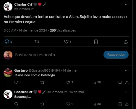 Ainda conforme a colega, essa contratação será feita por alguns fatores, como, por exemplo, o fato de Igor Jesus, que vem agradando muito, ainda ser bem jovem e Allan ainda não ter se firmado no Clube.