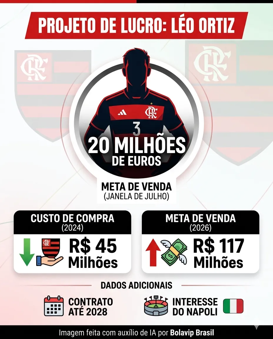 O Flamengo contratou Léo Ortiz em 2024 por 8,5 milhões de euros (R$ 45 milhões na época) e mira lucro absurdo na janela de julho. A diretoria rubro-negra só faz negócio por valores acima de R$ 100 milhões.