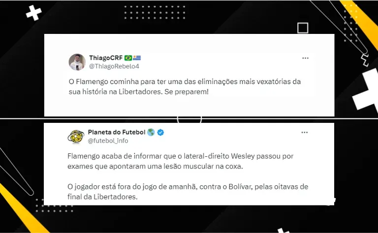 Esta será a primeira vez desde a temporada 2020 que o Flamengo não contará com nenhum desses atletas em uma partida de mata-mata da Libertadores.