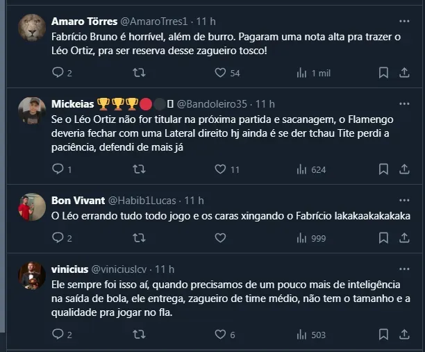 Flamenguistas criticam Fabrício Bruno