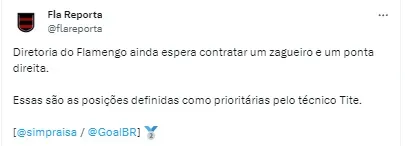 Além do zagueiro que já trabalhou com o treinador na Seleção Brasileira, o time carioca ainda quer contratar um ponta direita, segundo Raisa Simplicio. Um dos alvos que o Rubro-Negro Carioca quis nesta janela de transferências foi o atacante Luiz Henrique, que acabou fechando com o Botafogo.
