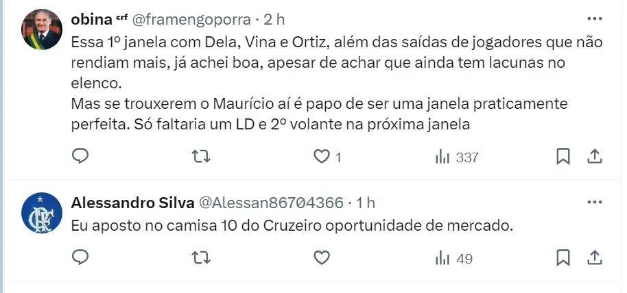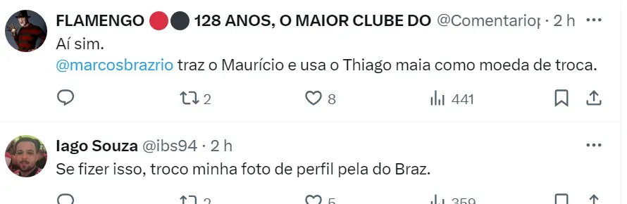 O jornalista Julio Miguel Neto ainda revelou que André Cury, empresário de Maurício, deseja tirar o atleta do Inter e estaria interessado a oferecê-lo novamente ao Mais Querido. Após não fechar com o meia Evander, ex-Vasco, a diretoria e comissão técnica flamenguista avaliam a situação.