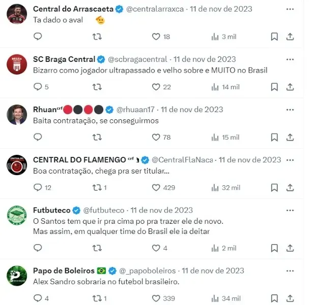 A última vez do lateral no Brasil foi em 2011, quando defendeu o Santos. Desde então, Alex Sandro vestiu as camisas do Porto e Juventus, onde está há quase uma década. A equipe italiana já avisou seu estafe que não pretende oferecer uma renovação.