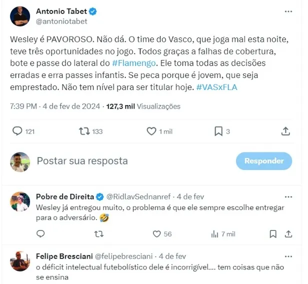 Opiniões da torcida por Wesley