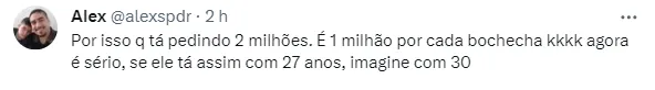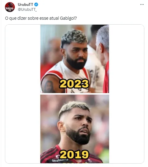 Além destes episódios, o que mais chamou a atenção na foto de cumprimento dos dois, foi a forma física de Gabigol. Nas redes, muitos apontaram o aspecto inchado que está o rosto do jogador, comparando-a com sua forma física em 2019, quando segundo os relatos, estava bem mais magro. Até o sósia de Gabigol foi citado na internet, com brincadeiras dizendo que ele já é o “próprio sósia”. Confira alguns comentários abaixo.
