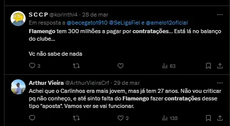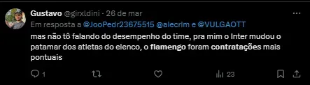 “O Flamengo tem obrigação e nos dá condições de termos peças de reposição. Seja com jogadores contratados ou com os jogadores da base”, completou o comandante Rubro-Negro Carioca na época.