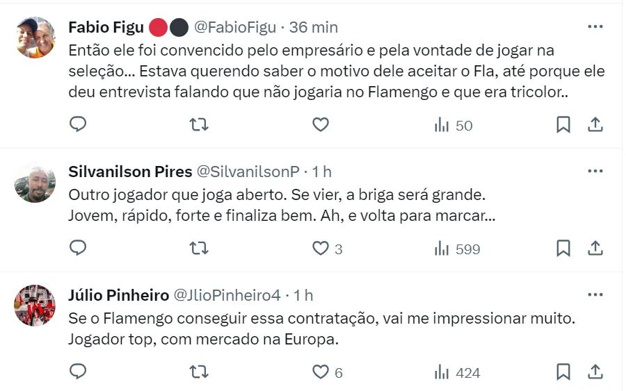 “Luiz não queria desgastar sua ligação com o Fluminense, mas entende que se retornar ao Brasil tem potencial para chegar à seleção e a melhor vitrine é o Rubro-Negro”, escreveu Pablo Raphael no X.