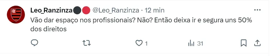 Ainda segundo informações do comunicador, a diretoria flamenguista e o estafe do atleta negaram a proposta. O vínculo do defensor com o time da Gávea vai até o fim de 2024 e, a partir do meio do ano, pode assinar pré-contrato com qualquer outro clube.