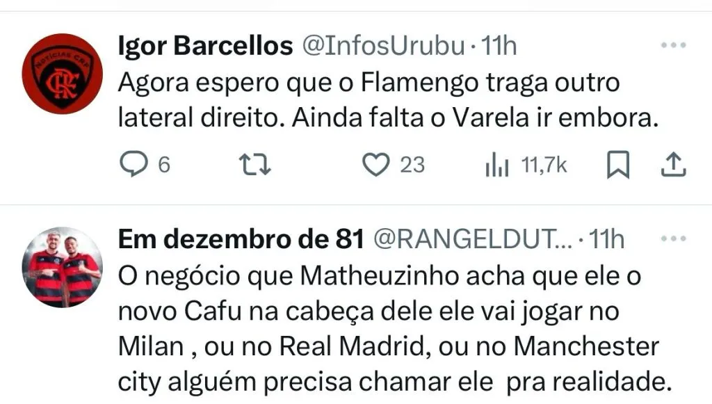 Torcedores do Flamengo fala sobre venda de Matheuzinho