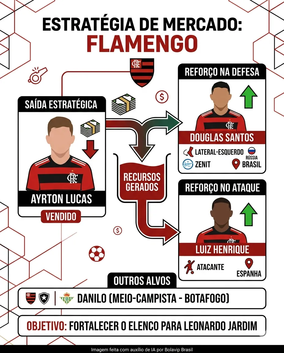 O Flamengo tem como um dos alvos para a próxima janela de transferências a contratação do lateral-esquerdo do Zenit e da Seleção Brasileira Douglas Santos. Com a chegada e com a possível renovação de Alex Sandro, Ayrton Lucas ganha força para deixar o Mengão em breve.