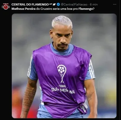 Trata-se do meia Matheus Pereira, que pertence ao time árabe e está emprestado ao Cruzeiro até o meio do ano. A informação sobre o interesse do Fla no camisa 10 da Raposa foi trazida pelo apresentador da TV Band Minas, Heverton Guimarães.
