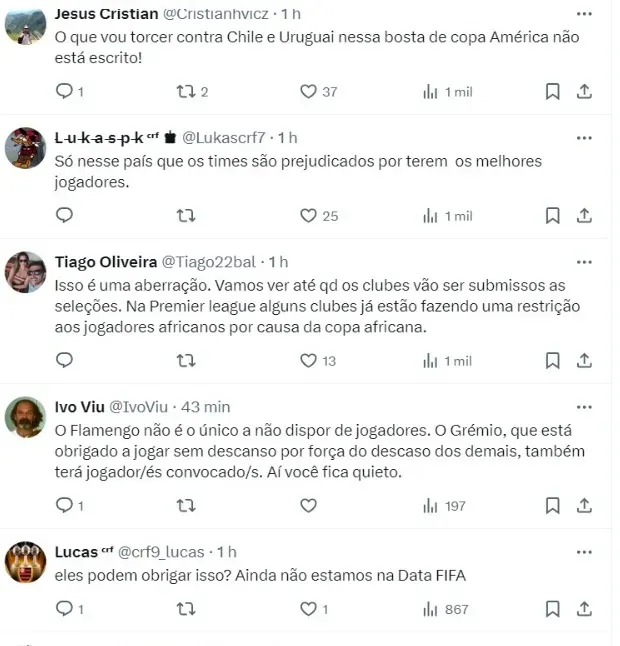 Já nesta segunda-feira (3), o Flamengo não teve uma notícia não animadora quanto esperava. O clube carioca teve seu pedido rejeitado pelas seleções do Uruguai e Chile. A informação foi publicado pelo UOL Esporte.