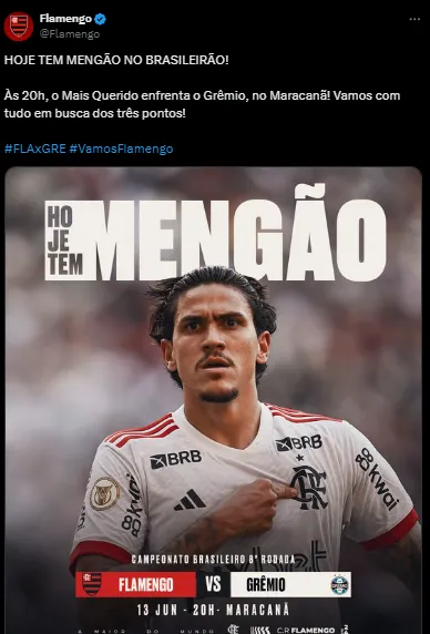 De olho na liderança do Campeonato Brasileiro, o Flamengo enfrenta o Grêmio. Os times se encaram nesta quinta-feira (13), no Maracanã, a partir das 20h (horário de Brasília).