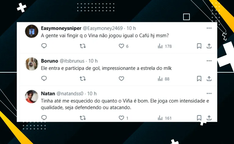 Sem tomar mais tanto tempo, é válido frisar que, mesmo com várias peças importantes do elenco fora de combate, o plantel do Flamengo demonstra sua qualidade a cada partida. A tendência é que Viña ganhe uma sequência. Veja os comentários: