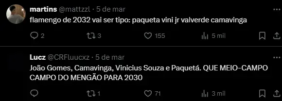 Na Europa não é diferente. Antes do duelo do Real Madrid contra o RB Leipzig pela volta das oitavas de final da Liga dos Campeões, o volante francês Camavinga citou o Fla em uma entrevista à TNT Sports Brasil.