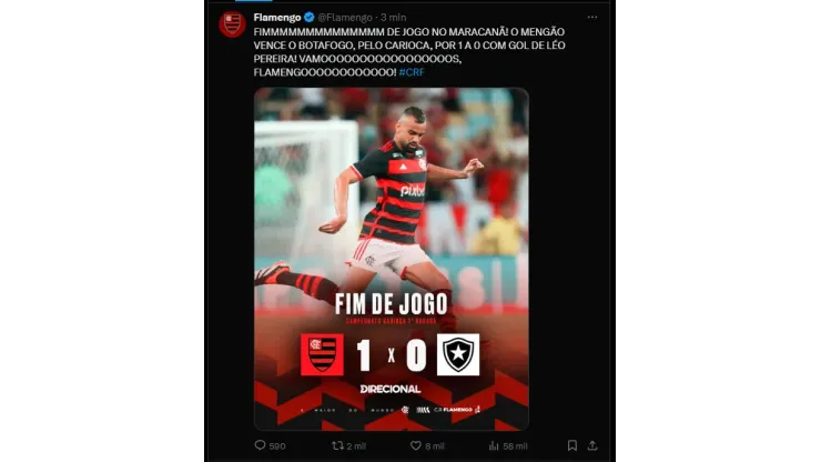 O Flamengo venceu o clássico pelo placar de 1 x 0. A equipe não apresenta um desempenho positivo nesse início de temporada, mas ainda não perdeu no ano de 2024.