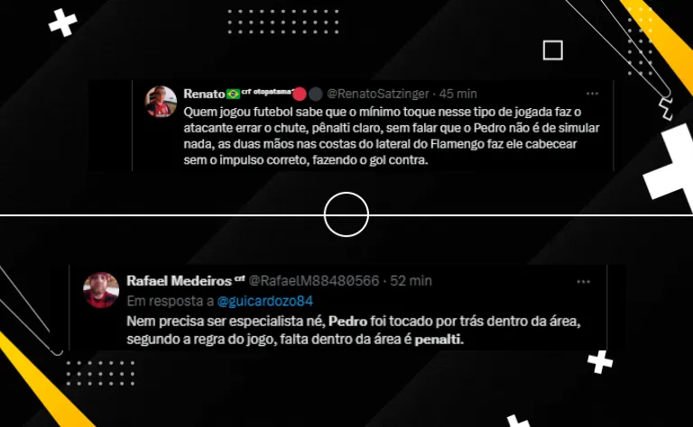 Por outro lado, os flamenguistas ficaram na bronca com o primeiro gol. Wesley jogou contra as próprias redes, mas para alguns ele teria sido desequilibrado antes. Para o analisa, a decisão de não anular foi correta, pois o contato não foi faltoso.
