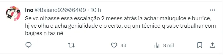 Concorda com as modificações de Tite para o confronto contra o Palmeiras?