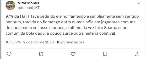 Isso porque o portal afirmou que a diretoria do Clube Carioca é a única, entre os times brasileiros, que segue conversando para ter o jogador de 29 anos. O nome de Scarpa é muito bem avaliado no Flamengo.