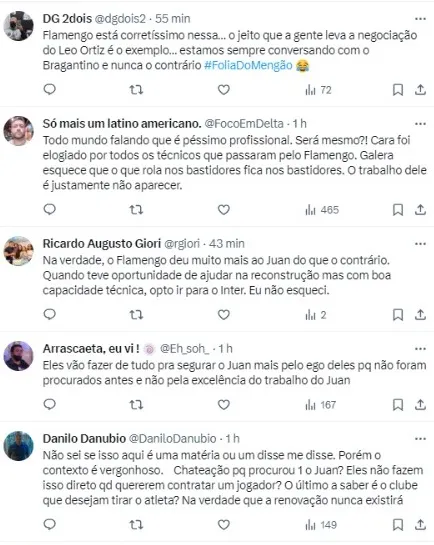 O Flamengo irá tentar manter o Juan no clube. Se vai conseguir? Não sabemos. Mas essa será a postura do Flamengo, completou a jornalista, deixando claro que o futuro do dirigente ainda não está definido.