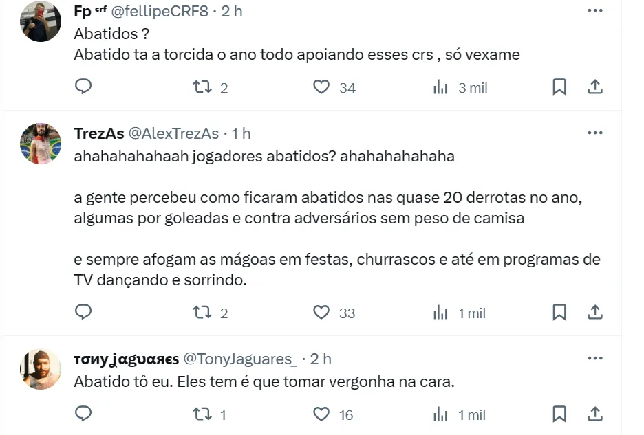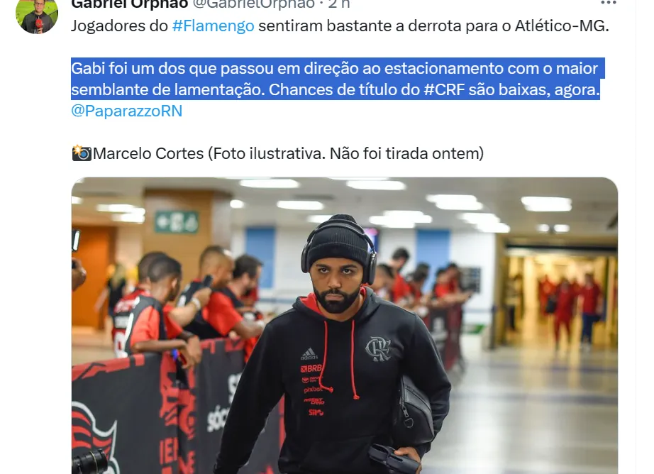 Gabriel Orphão, setorista do Mengão no canal Paparazzo Rubro-Negro, apurou que o camisa 10 “foi um dos que passou em direção ao estacionamento com o maior semblante de lamentação”.