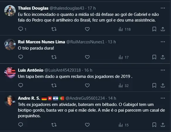 No entanto, como já se passaram cinco anos daquela “temporada mágica”, os heróis de 2019 vivem momentos distintos atualmente. Do trio ofensivo formado por Gabigol, Bruno Henrique e Arrascaeta, só o uruguaio é titular.