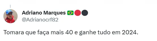 Além da decisão, Gabi vislumbra um 2024 melhor em relação aos números. Em 2023, sua pior temporada na Gávea, o atacante marcou 20 gols. O jogador apostou com Zico que fará, pelo menos, 35.