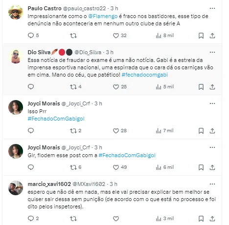 “O atleta Gabriel Barbosa, sua família e staff tomaram conhecimento da matéria publicada nesta sexta-feira (22) pelo site GE. O jogador do Flamengo vem a público confirmar que o exame foi realizado e o resultado apurado já deu negativo”, iniciou o texto.