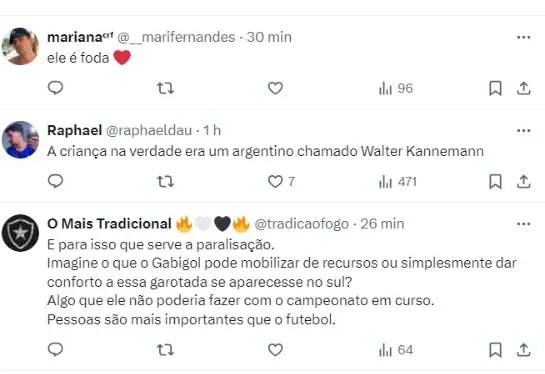 “Anteontem, cheguei em um abrigo e tinha um gurizinho. Falavam que o D’ale estava ali, mas ele respondeu que queria ver o Gabigol”, disse D’Alessandro em uma publicação.