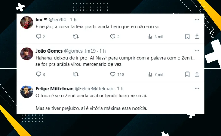 Por fim, como Gerson abriu mão de muita coisa envolvendo o Fla para aceitar a grana russa, muitos flamenguistas aproveitaram a notícia de sua possível transação para repercutir o tema. Veja alguns comentários: