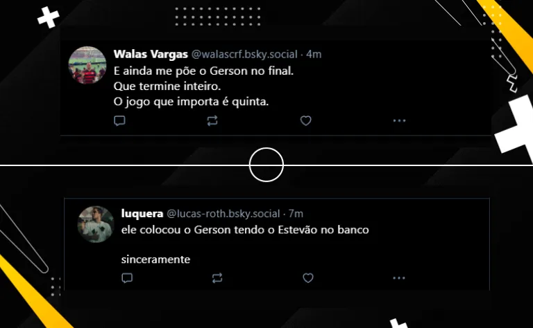É claro, também houve reclamação da torcida flamenguista, em um tom mais de bom humor, envolvendo o atleta do Rubro-Negro: “Dorival Júnior poderia deixar o Gerson no banco, evitar qualquer lesão“.