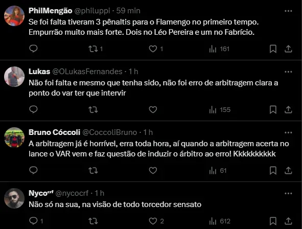Dentro de campo, os jogadores e o técnico Tite não concordaram com a marcação e nas redes sociais o clima não foi diferente. A jogada gerou muito debate com todos.