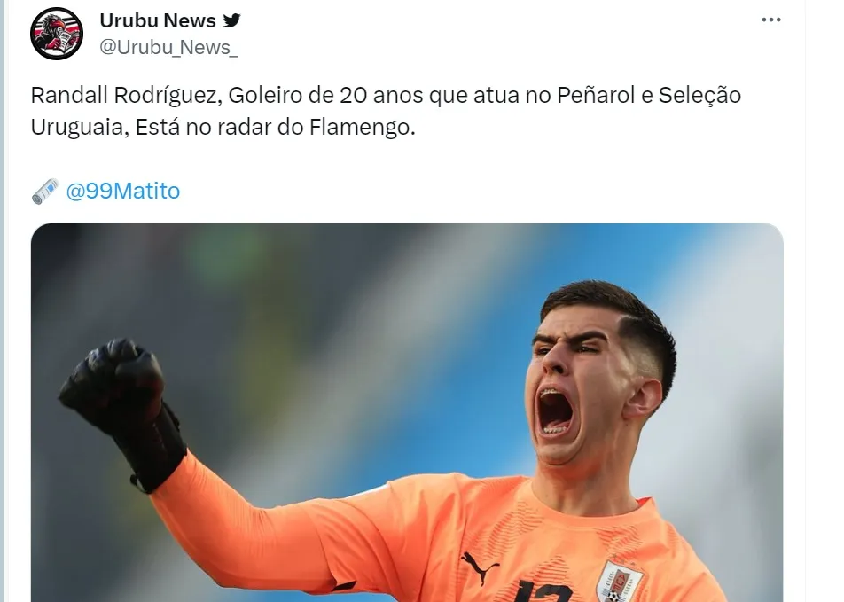 Randall Rodríguez, Goleiro de 20 anos que atua no Peñarol e Seleção Uruguaia, Está no radar do Flamengo.