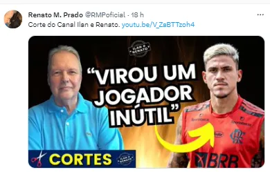 O jornalista Renato Maurício Prado fez questão de criticar um desses nomes badalados do elenco. Ele detonou Pedro, que já foi artilheiro da equipe, mas não vive seus melhores momentos. RMP usou palavras fortes para criticar o camisa 9 flamenguista.
