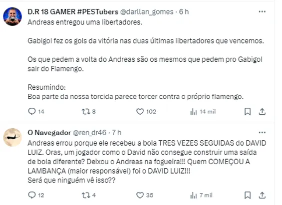 Torcedores trouxeram o jogo à tona e falaram sobre Andreas Pereira, que ficou com a “mancha” de ter sido o responsável por ter “dado” o título ao clube paulista, que se sagrava bicampeão.