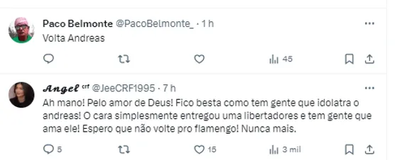 Pelo outro lado, palmeirenses sempre relembram tirando onda com a “entregada” do ex-jogador Rubro-Negro. Na época, inclusive, Abel Ferreira foi quem “deu a dica” para Deyverson pressionar Andreas Pereira, que o gol sairia.
