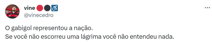 Nas redes sociais, os torcedores do Mengão se sentiram representados pelo atacante Gabigol e exaltaram o camisa 10. De acordo com os flamenguistas, o atacante sabe o que é vestir o manto rubro-negro.