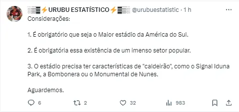 “E no nosso novo estádio, se a gente conseguir viabilizar imediatamente ou nos próximos tempos, terá uma área mais efetivamente popular. Porque aí você consegue construir um estádio com esse objetivo”, contou Gustavo Oliveira, vice de marketing do Flamengo.