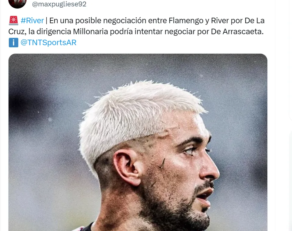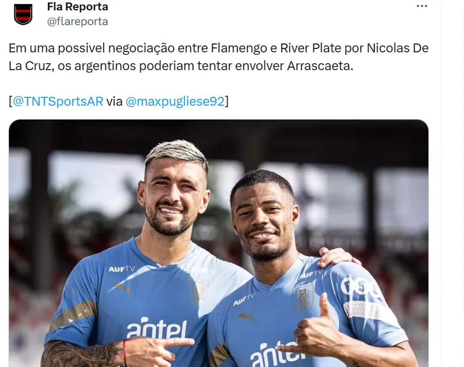 Informação quente: De La Cruz por Arrascaeta? River topa negócio com troca e novidade vem da Argentina