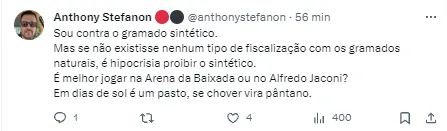 Como é de costume, a discussão sobre uso ou não da grama sintética foi pautada por zoações entre rivais. Os adeptos das instituições que utilizam o gramado, não costumam demonstrar abertura para mudar de ideia. O mesmo acontece com clubes que não utilizam.