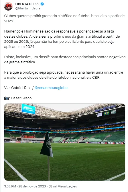 Caso a CBF aprove o fim do gramado sintético, clubes como Athletico-PR, Botafogo e Palmeiras teriam que reformar o tipo do comum utilizado em seus respectivos estádios. O assunto chegou a ser tratado pelo viés clubista nas redes sociais.