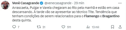 Lembrando que a partida é um confronto direto pela briga do título do Campeonato Brasilerio, apesar da liderança do Palmeiras e falta poucas rodadas para o fim, ainda segue tudo em aberto.