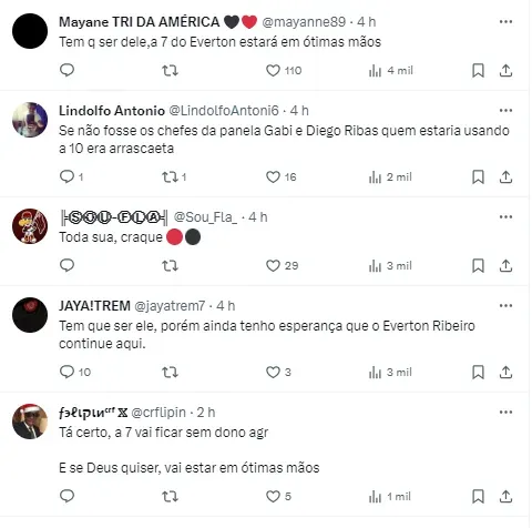 Depois de não ter a renovação acertada com o Flamengo, Everton Ribeiro deixou a equipe para reforçar o Bahia. Logo, a camisa 7 usada pelo meia ficará disponível por pouco tempo.