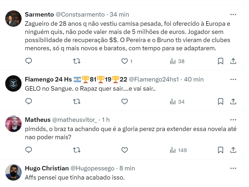 O objetivo do empresário de Léo Ortiz é convencer a diretoria aceitar a proposta do Flamengo. Reforçando que, há dois anos, foi Fabrício Bruno que trocava o Bragantino pelo Mais Querido.