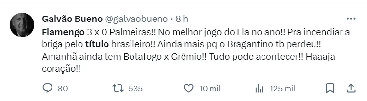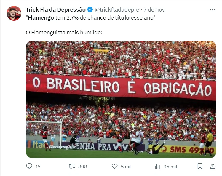 O Flamengo venceu e convenceu após triunfo diante do Palmeiras na última quarta-feira (8), no Maracanã, onde ganhou por 3 a 0, e chegou aos 56 pontos no Campeonato Brasileiro. Na quinta colocação, o Rubro-Negro diminuiu a vantagem para o líder em três pontos e segue vivo na competição.