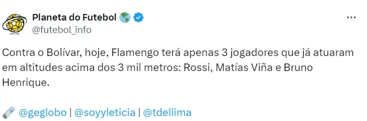O Rubro-Negro, que conhece os perigos de seus adversários do Grupo E, terá algumas modificações para o confronto. Com isso, Tite terá apenas três jogadores com experiência na altitude.