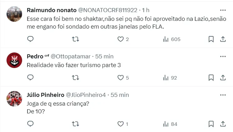 Mas, durante o embarque, Marcos Braz destacou que a ida para a Europa não era apenas por Viña e Luiz Henrique. “Sim, tem outro jogador. Temos a necessidade de um zagueiro, um lateral-esquerdo e alguns desejos do técnico”, revelou durante entrevista ao Youtuber Flazoeiro.